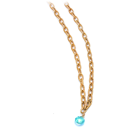Like a mysterious jewel that’s surfaced from the deepest ocean, we’ve cherry-picked our single glittering sea green apatite droplet so that it bounces and sparkles with color and light. A tiny, meticulously intricate rope chain texture adds tiny detail and sparkle; and warm, sunshine yellow metal envelops this rich aqua blue with sunny warmth and brilliance. Perfect for mermaids, or anyone who calls the waves home.